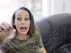Stepson whips out his big cock and show it to his stepmom