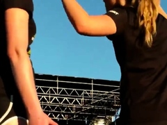 big ass blonde in leggings at concert