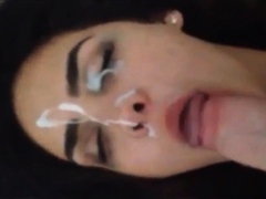 Raven Haired Cum Whores Painted White with Cum Compilation